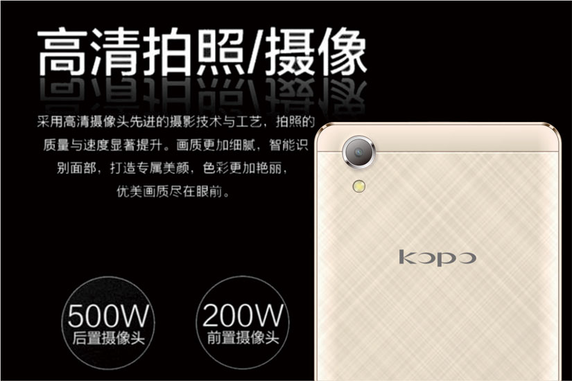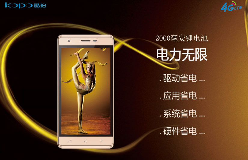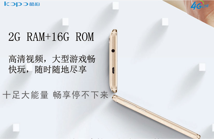 金酷珀 KOPO A1 CPU 四核 1.5GHZ 内存 1G+8G 1G+16G 2G+16G 3G+32G 4个配置可选 主屏 5.0英寸 HD (1280×720) 颜色 白色 金色 电池 2000MAH